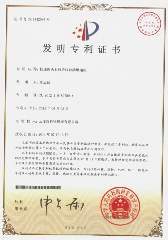 企業組建了“云浮市石材機械裝備工程技術研究開發(fā)中心”,并與高校和科研院所密切合作,致力于光機電一體化產品的研發(fā)、生產、銷售和服務。主要產品有框架鋸、全自動連續(xù)磨拋機、橋式自動切割機、全自動仿形石線機、數控金剛石繩鋸、裁切機等。產品具有自動化程度高、加工精度高和生產效率高等特點。產品除國內銷售外,還出口到歐美、東南亞、韓國、印度、中東、非洲、俄羅斯、澳大利亞等國家和地區,深受用戶好評。“橋式自動切割機”被認定為廣東省高新技術產品,擁有發(fā)明專利1項、實用新型專利1項。